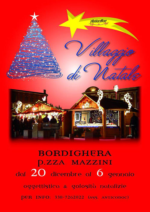 Le tipiche casette di legno in perfetto stile Tirolese vi aspettano anche quest'anno in Corso Italia a Bordighera per la terza edizione del "Villaggio di Natale" che aprirà i battenti Venerdì 18 dicembre per proporre tutti i principali articoli a tema natalizio a tutti i visitatori.